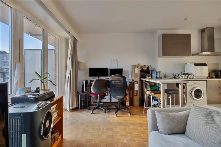 Dit charmante studio in Etterbeek biedt een gezellige woonruimte van 45m². Het studio straalt een moderne sfeer uit met een open keuken die voorzien is van alle comfort en apparatuur. De ruime woonkamer heeft grote ramen die zorgen voor veel natuurlijk lichtinval en directe toegang bieden tot een privébalkon met een prachtig uitzicht over de stad en groenvoorzieningen.