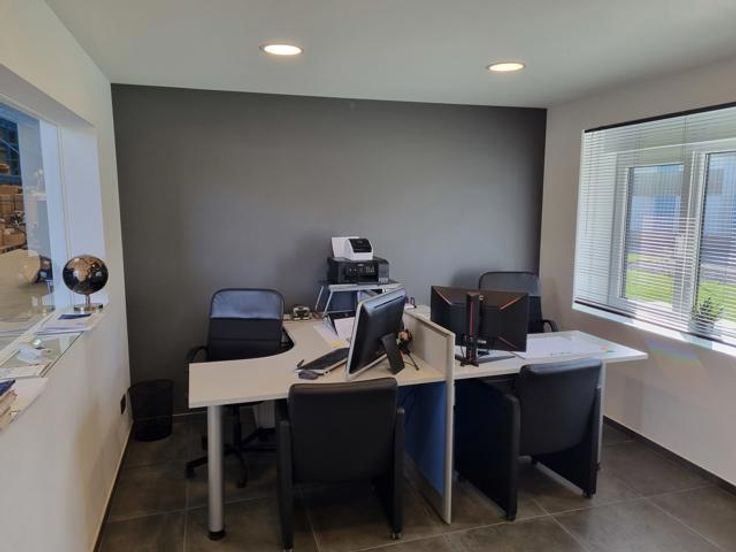 Dit bedrijfsgebouw met kantoren is gelegen op industriezone Truibroek te Ham, vlakbij de E313. Het gebouw beschikt over een kantoor van 80m² met de volgende indeling: gelijkvloers: kantoorruimte, sanitair en een kleine kitchenette, op de verdieping bevindt zich een groot kantoor/vergaderlokaal.