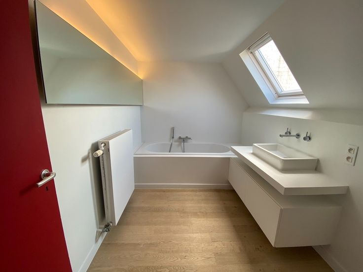 - Moderne badkamer met ligbad, toilet en lavabo