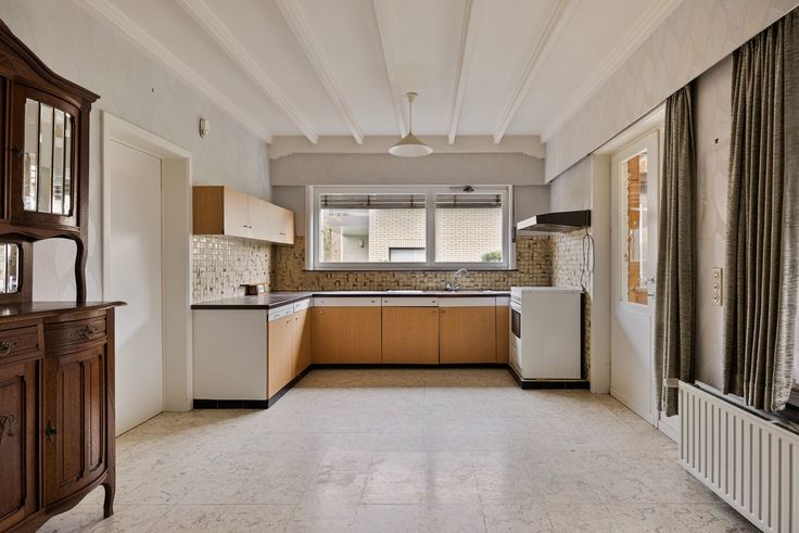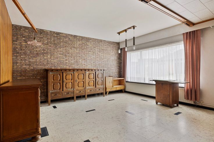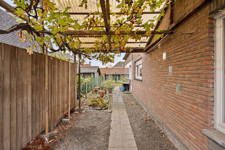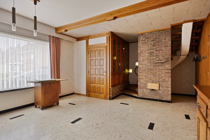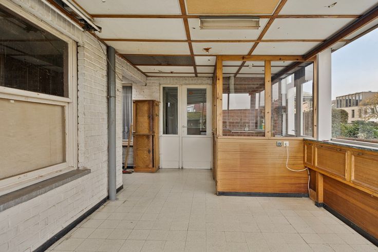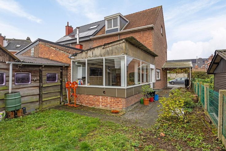 Het huis heeft een voortuin en oprit met parkeermogelijkheden. Via de inkom kom je in de leefruimte. Aansluitend is een ruime keuken van waar je naar de veranda/aanbouw,wc en berging gaat. In de tuin is een schuur/berging.