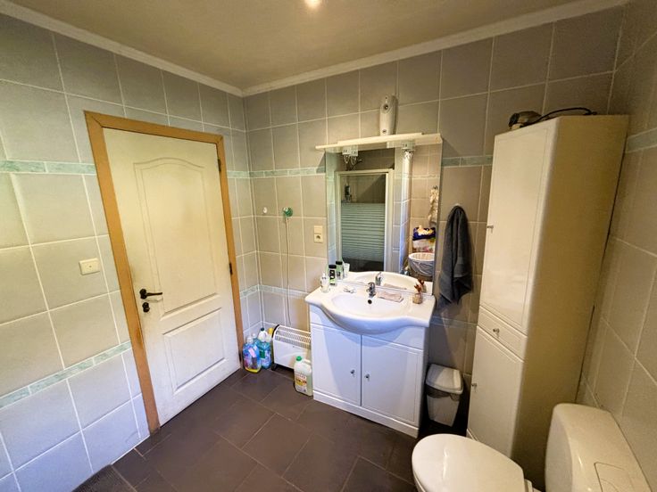 L’agence Immo Service a le plaisir de vous proposer cette magnifique maison située à 15 minutes à pied de la gare de la Louvière Centre, à 20 minutes à pied du centre-ville et à 10 minutes en voiture de la E42. Ce bien se compose comme suit : Au rez-de chaussée : d’un hall d’entrée, d’une première pièce de vie, d’un spacieux salon, d’une grande cuisine équipée et d’une salle de bain (douche, lavabo et wc). Au premier étage : un hall de nuit qui désert 4 chambres. Au second étage : un immense grenier aménageable où l’on peut faire 3 chambres supplémentaires. A l’extérieur : un garage attenant à la maison et un grand jardin. D’un point de vue technique : poêle au gaz et châssis double vitrage PVC. Possibilité d’acheter en supplément un verger de 16 ares situé en face de la maison. Certains éléments de décoration présents, actuellement, dans le bien ne font pas partie intégrante de la vente.