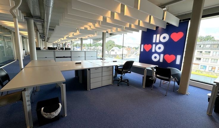 Specificaties: deels ingedeelde kantoorruimte met glaswanden, keuken met refter en privatief sanitair H/D, aluminium schrijnwerk met extra isolerende beglazing, akoestische baffles en open zoldering met opbouw led-armaturen, databekabeling en kabelzuilen, linoleum vloerbekleding en tapijt, geothermische warmtepomp en klimatisatie d.m.v. betonkernactivering met geothermie, 2 liften, videofoon, rookdetectie en brandalarm, brandblushaspels, fietsenstalling en mogelijkheid tot bovengrondse en ondergrondse parking