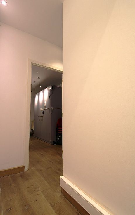 Toilet voorzien. Geen kitchenette aanwezig maar wel ruimte om frigo en koffiezet te plaatsen. Kitchenette kan makkelijk bijgeplaatst worden naast de toiletruimte.