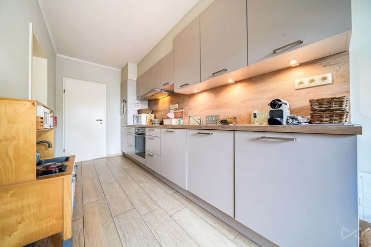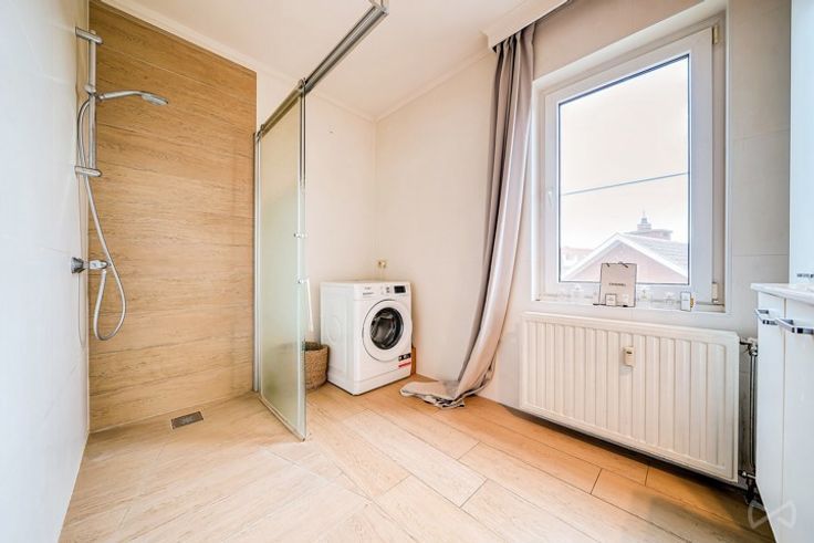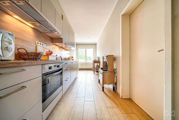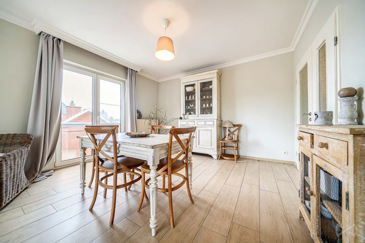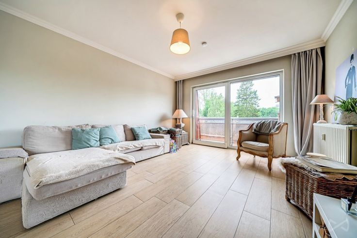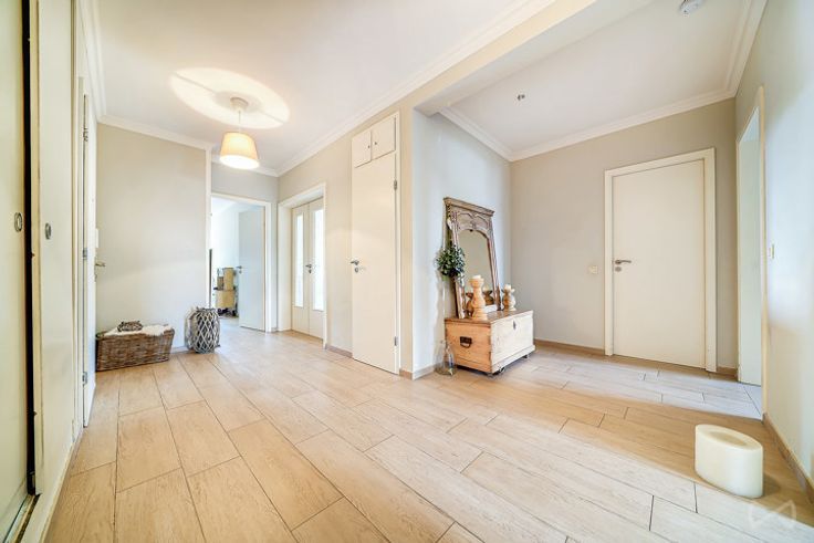 Appartement +/-115 m2 composé d’un grand hall, grande cuisine équipée avec coin à manger(13m2), grand living (35m2), 3ch(19 -17-14m2), salle de bain (6m2 avec douche italienne), WC séparé avec lave main, cave individuelle fermée,