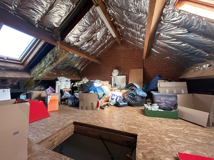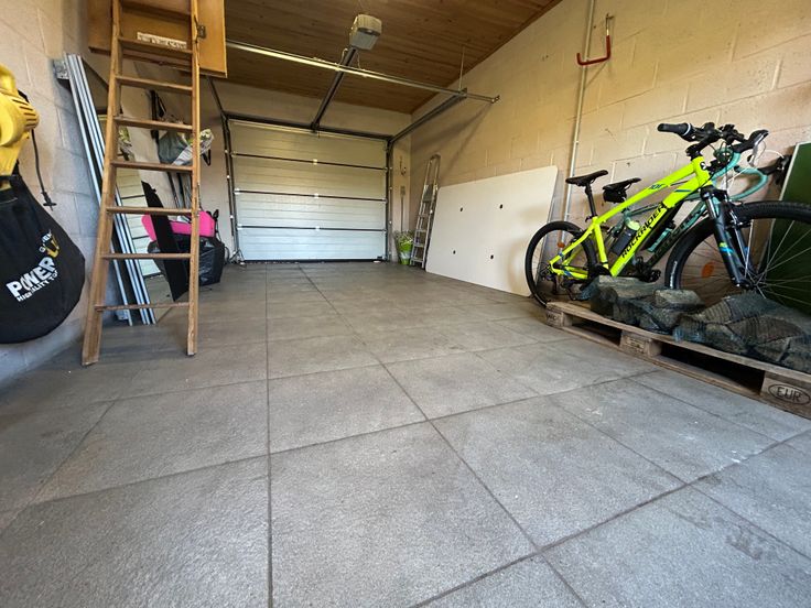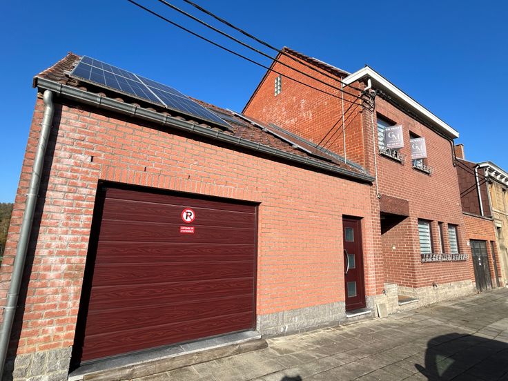 Une entrée séparée donne sur un petit hall desservant un bureau de +/- 15m², un grenier aménageable de +/- 30m² et un garage de +/- 25m² avec porte électrique.