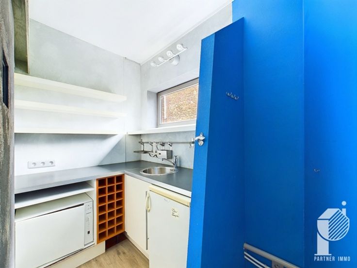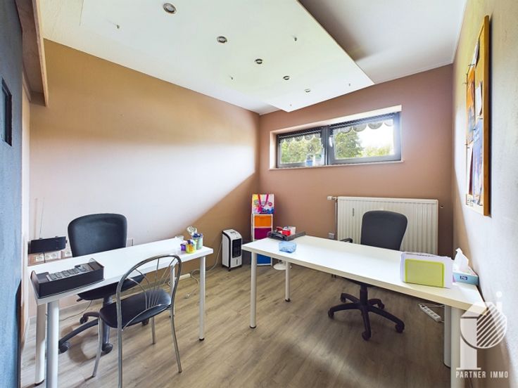 Grote open kantoorruimte van 38 m², tweede kantoor, vergaderruimte (of derde groot kantoor), kitchenette, WC.