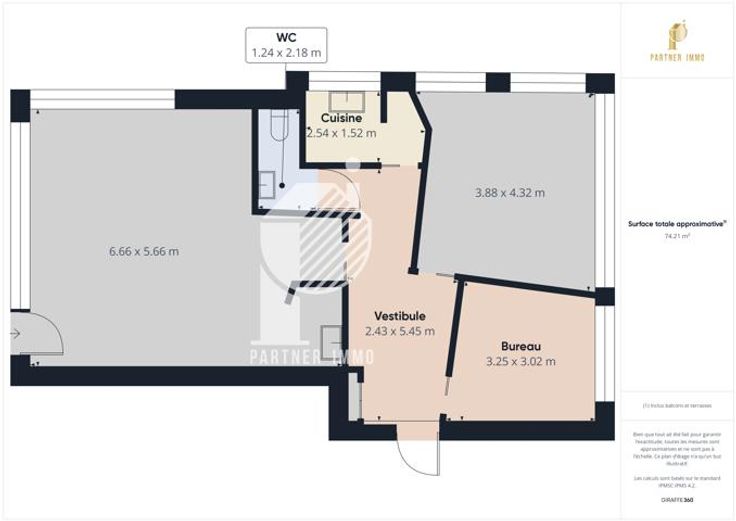 Totale oppervlakte van +/- 78 m².