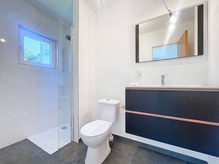 Equipée de châssis PVC double vitrage et chauffage par pompe à chaleur.