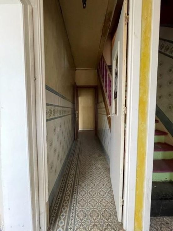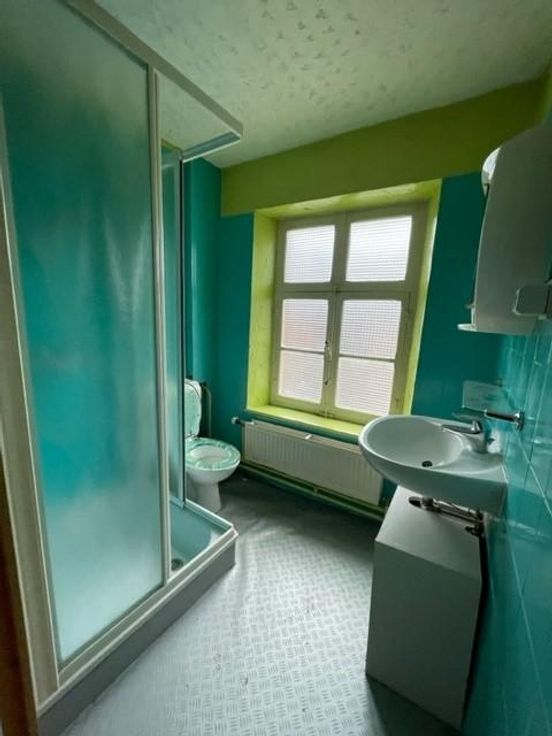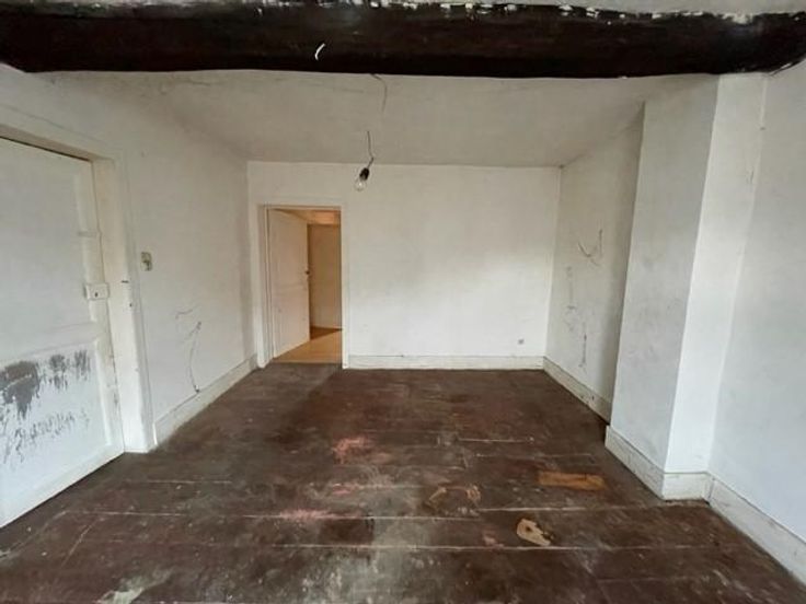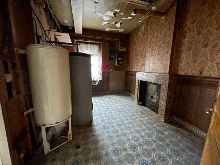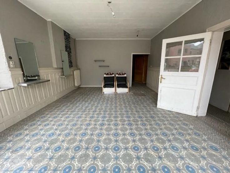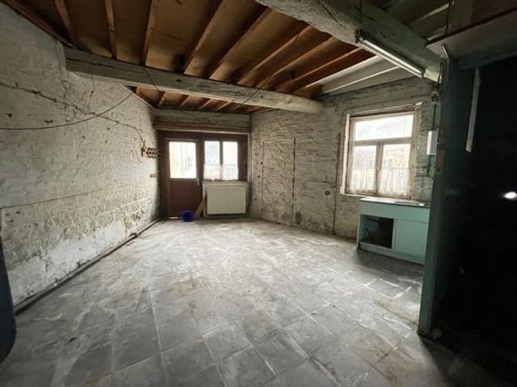 Située à proximité de la E411, maison mitoyenne, à rénover qui se compose de : - au rez-de-chaussée : un hall d’entrée, un ancien salon de coiffure, une chaufferie, une salle à manger, un salon, un W.C., une remise ; - au 1er étage : un hall de nuit avec dressing, un séjour ouvert sur la cuisine, deux chambres, une salle de douche (un lavabo, une douche, un W.C.) ; - au 2ème étage : une grenier aménageable ; - au sous-sol : une cave ; Châssis : SV et DV en bois. Désignation cadastrale : Houyet/1ère division/Houyet, Section B N°0094G P0000 & 0094R P0000.