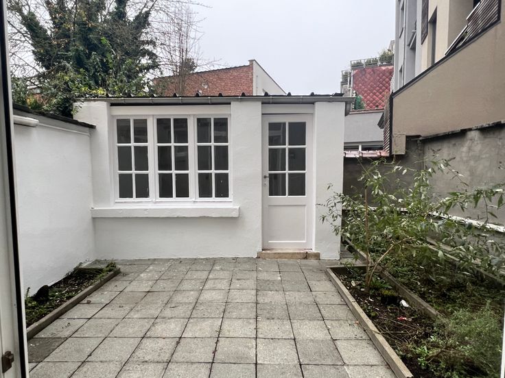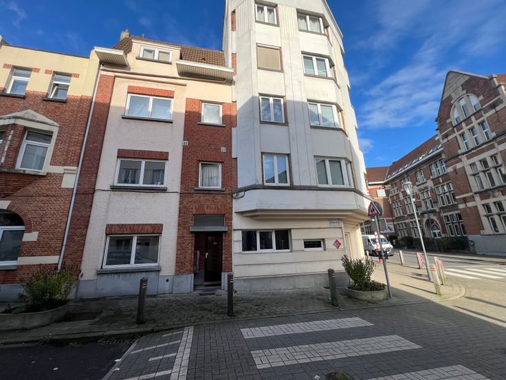 L’appartement se compose comme suit : une pièce à vivre +-18m², une chambre +-18m², une cuisine équipée, une salle de douche +-2m², une toilette séparée, une cour extérieure +- 32 m² avec une annexe. Au sous-sol, une cave privative.