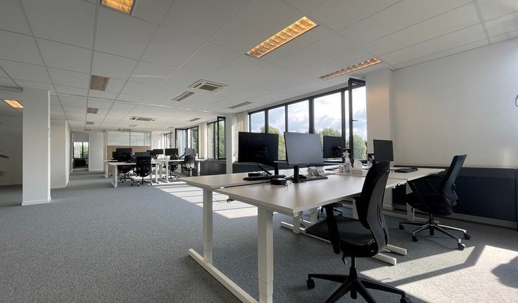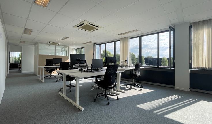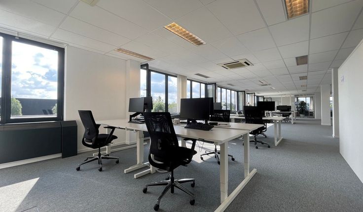Specificaties: landschapskantoor, dubbel glas, binnenzonwering, verlaagd plafond met inbouw tl-armaturen, plintkabelgoten en vloercontactdozen, vasttapijt, privatief sanitair, kitchenette met toestellen en refter, cv op gas, airco, mechanische ventilatie, parlofoon, alarm, toegang met badge, 2 liften, archiefruimte, fietsenstalling, mogelijkheid tot publicatie op totem, parkingratio 1/25