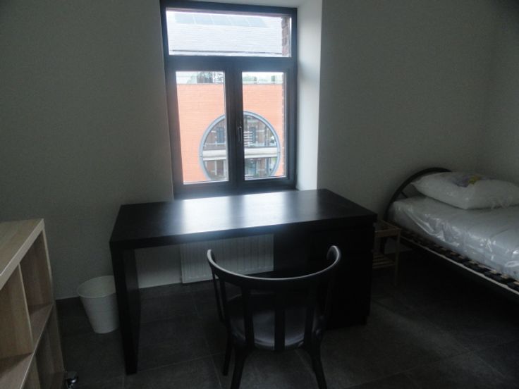 un kot situé au 2ème étage d'une maison, faisant partie d'un ensemble de 3 kots. Il comprend une chambre privative de 10m2, une cuisine équipée commune de 15 m2, d'une salle de bain ( grande douche, évier, toilette)