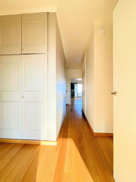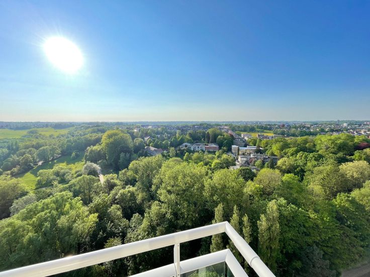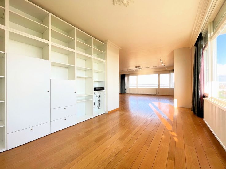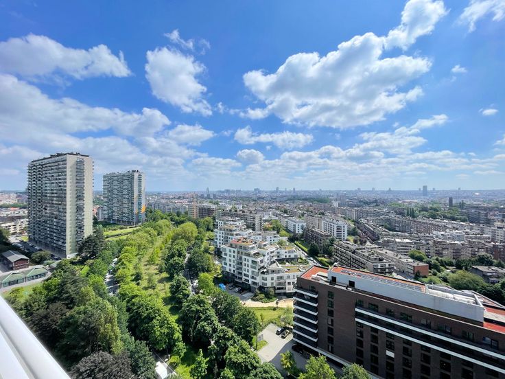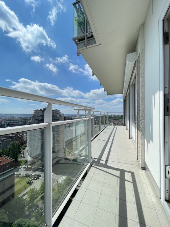 Au 19ème étage d’un bel immeuble très bien géré (le syndic est copropriétaire-occupant), superbe grand appartement 3 chambres de 162 m² offrant une luminosité extraordinaire et des vues à couper le souffle ! Sa composition : Hall d’entrée avec sol parquet, vestiaire intégré, vidéoparlophone et wc séparé - grand séjour/salle à manger de 61 m² baigné de soleil, avec magnifique sol parquet, espace bureau (nombreux meubles intégrés), grande bibliothèque/bar intégrée et accès à deux terrasses offrant de splendides vues sur la skyline bruxelloise - cuisine hyper-équipée (nombreux meubles modernes, double évier, taques vitro, four électrique et micro-ondes, hotte, grand frigo-congélateur, lave-vaisselle, congélateur à 6 compartiments, meuble-buanderie, chaudière murale gaz de 2023) avec accès à la terrasse avant - hall de nuit avec sol parquet et deux garde-robes intégrées - 3 belles chambres (20, 14 et 11 m²), la plus grande disposant d’un espace dressing et d’un accès à la terrasse arrière offrant de superbes vues sur les faubourgs verts de Bruxelles - salle de bain (meuble lavabo, armoire à pharmacie avec portes-miroirs, meuble-colonne) - salle de douche/wc (meuble-lavabo, douche, wc). Double vitrage avec volets électriques partout, câblage et haut-parleurs hi-fi dans le séjour/salle à manger et dans la cuisine, ascenseur conforme, adoucisseur d’eau commun, cave. Excellente performance énergétique (catégorie D). Possibilité d’achat d’un grand garage box fermé dans l’immeuble.