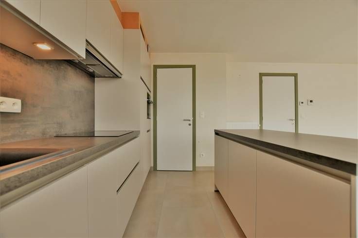 Dit nieuwbouw appartement gelegen op de eerste verdieping, bestaat uit een lichtrijke woonkamer met open keuken en toestellen (inductie kookplaat, dampkap, afwasmachine, koelkast en oven) en aansluitende berging/wasplaats met aansluiting voor wasmachine.