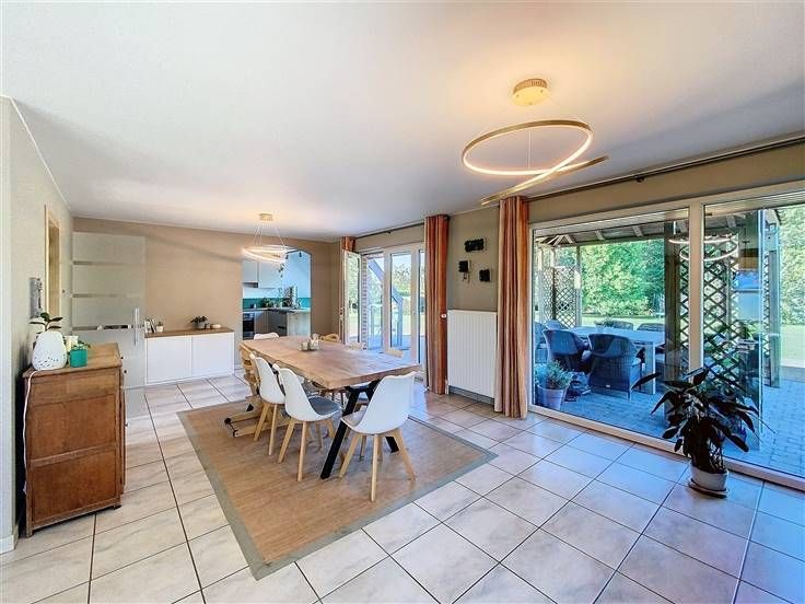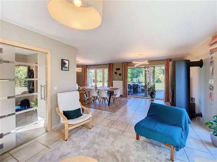 TE KOOP - Kom en ontdek deze eigendom bestaande uit een VILLA en een BIJgebouw (bureau, kantoor of andere), allemaal gelegen in een prachtige beboste tuin van +/- 42 are. Het huis, gerenoveerd met smaak en kwaliteit, heeft een inkomhal, een woonkamer, een eetkamer en een keuken .