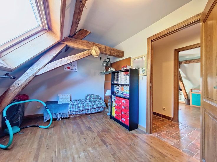 Nichée dans un cadre paisible à l’orée du bois, cette ancienne dépendance du Château de l’Estriverie est un véritable bien « coup de cœur ». Située au sein du village de Bois-de-Lessines, cette propriété d’exception de +/-363m² est une opportunité idéale pour une grande famille. Elle offre un hall d’entrée, un séjour avec insert à bois, une cuisine, un bureau, un espace sanitaire, une salle de loisirs, une buanderie, une pièce polyvalente, des locaux techniques, un garage, ainsi qu’une grande pièce brute aménageable, avec porte indépendante, pouvant satisfaire une profession libérale. L’étage est doté d’un hall de nuit, de 4CH, d’un dressing, d’un WC, d’une SDB, et d’un 2ème hall desservant 2 pièces à rénover de +/-13 et 18m². L’extrémité du bâtiment, avec entrée séparée, offre des pièces supplémentaires à rénover (+/-25m²), idéales pour un airbnb (sous réserve des autorisations nécessaires). Ayant bénéficié de nombreuses rénovations ces 5 dernières années (châssis, panneaux thermiques, panneaux photovoltaïques, chaudière,…), cette bâtisse offre non seulement un confort énergétique (label C), mais aussi un charme authentique de par la conservation des poutres apparentes, briques et voussettes au cachet indéniable. Un magnifique jardin vient compléter ce beau programme. Prix : f. o. à pd 675 000€ sous réserve d’acceptation des vendeurs. Possibilité d’acquérir en sus les parcelles contiguës (11a55ca avec terrain de tennis à réhabiliter et 69a75 en zone forestière) pour 50 000€.