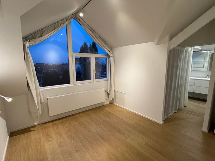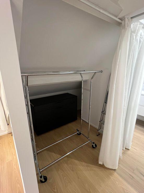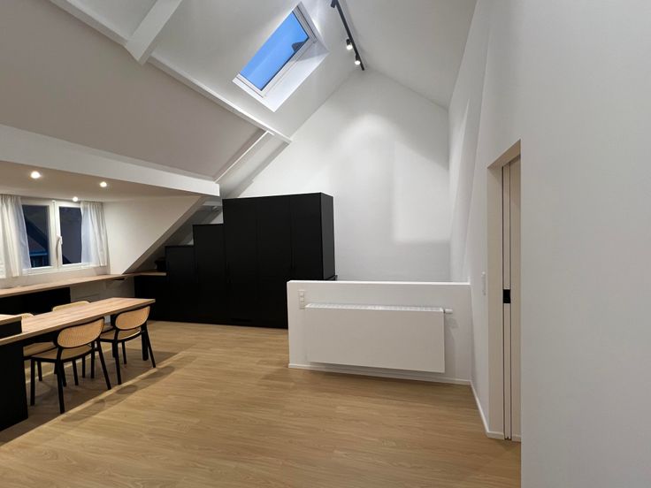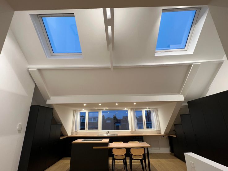 Le point fort de l'appartement est sa hauteur sous plafond énorme avec de belles poutres apparentes.