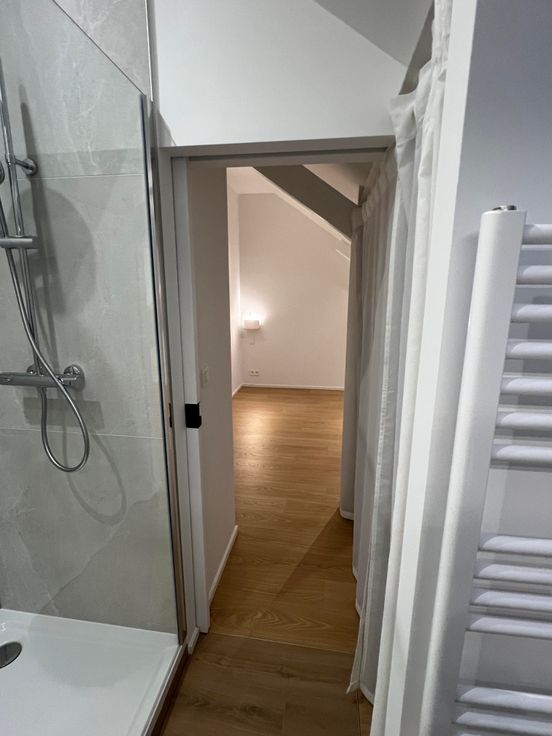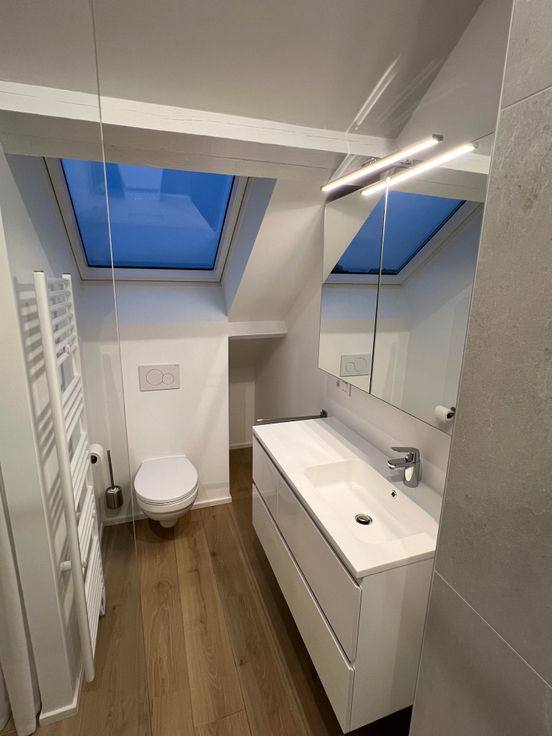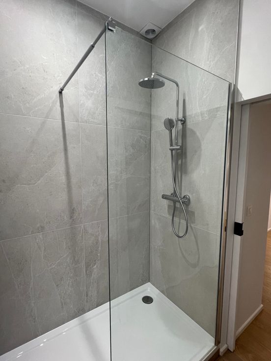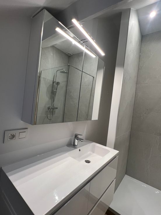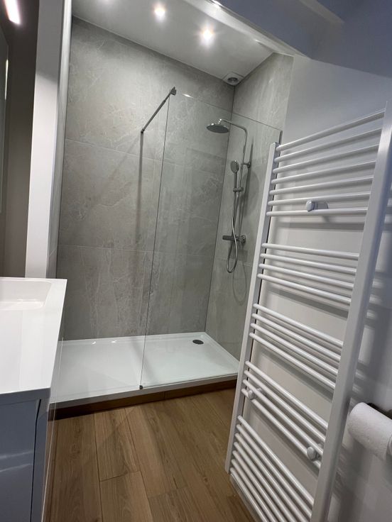 La salle de douche est équipée d'un extracteur et d'un Velux ainsi que d'un chauffe serviettes.