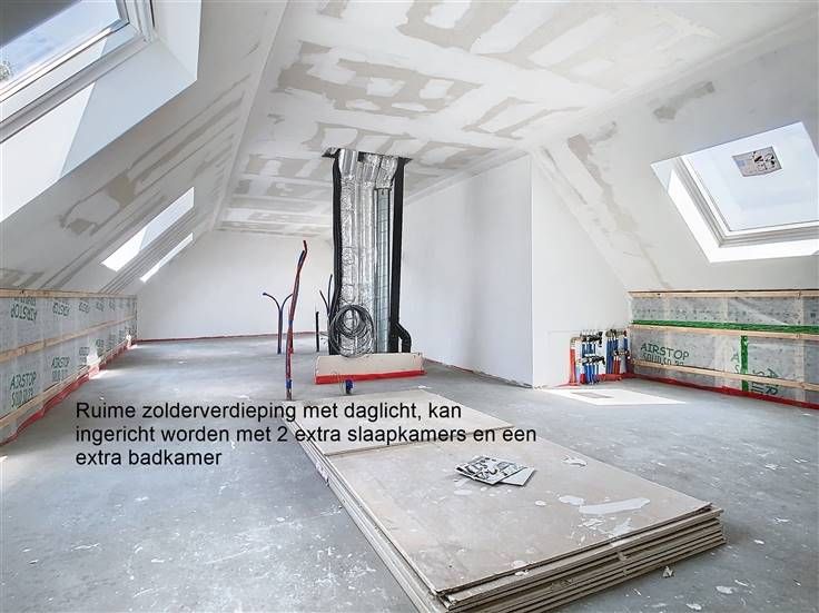 Dubbelhuis, de ideale uitvalsbasis voor mensen die thuis absolute rust willen, ontdek het hier! 100% Groen 100% Energiezuinig 100% Future Proof 100% Aan 6% BTW Penthouse 2.1 heeft een oppervlakte van 189m², is bereikbaar met een lift en bevindt zich op de 2de verdieping. Het private terras is 14m² en kijkt uit op de prachtige, gemeenschappelijke tuin van dit project. De indeling van het appartement bestaat uit: Inkom met apart toilet, Ruime leefruimte met open keuken met berging en aparte bureauhoek, 2 slaapkamers, Badkamer met plaats voor dubbele lavabo, inloopdouche en ligbad, Uniek aan deze penthouse is de ruime, afgewerkte zolderverdieping die in de prijs zit! Wat is er INBEGREPEN in de afwerking van de zolderverdieping: ?Trap: Er is een vaste betonnen trap naar de zolderverdieping, welke betegeld afgewerkt zal worden; + ?Chapewerk; + Vloerverwarming; + ?Vloerwerk: Volgens het budget in het lastenboek; ?+ Gyprocwerk: Dakwanden worden afgewerkt. Zolder wordt opgeleverd als 1 open ruimte; + ?Wachtleidingen elektra & sanitair zitten klaar; De zolder is dan één grote ruimte ideaal voor: + Home office + Extra leefruimte + Hobbyruimte + Men cave ;-) + ... Extra optie mogelijk: zolderverdieping inclusief vloerverwarming afwerken tot 2 extra Slaapkamers & 1 badkamer uitgerust met dubbele lavabo & douche, Voor slecht een meer prijs van 15.000 euro. Mits deze opleg beschik je over