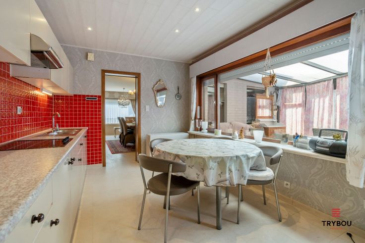 Uitstekend gelegen, goed onderhouden woning met grote tuin. De woning bestaat uit: Gelijkvloers: Inkomhal - leefruimte met zit- en eethoek - goed onderhouden leefkeuken met aansluitende veranda - apart toilet - badkamer uitgerust met ligbad met douchecomfort - apart toilet - trappenhal; Verdieping: nachthal - 3 slaapkamers Grote tuin met buitenberging, garage, serre en tuinhuis.
