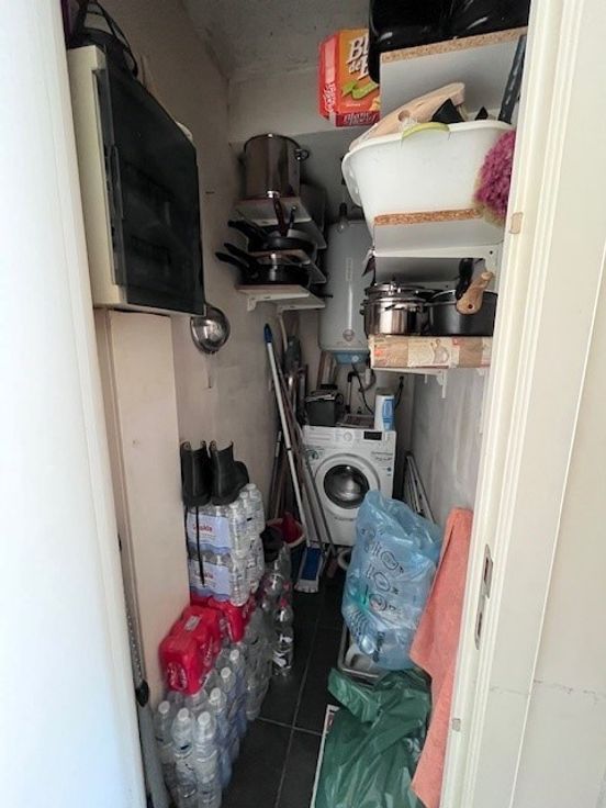 Bestaat uit inkom, woonkamer met open keuken + afgesloten bergruimte (mogelijkheid tot plaatsen van wasmachine), 1 badkamer met bad en toilet.