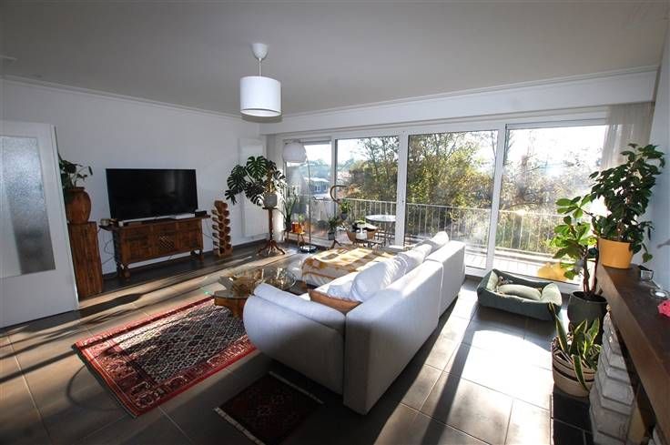 Sorry er is geen nederlandse vertaling beschikbaar. Disponible à partir du 1er Janvier 2025. Bel appartement 2 chambres de +/- 100 m² + Grande terrasse de +/- 23m² dans un immeuble avec ascenseur. Hall d'entrée (porte blindée) - Vestiaire - 1 wc individuel - Lumineux Living de +/- 40m² avec accès à une grande terrasse exposée Sud-Est - Cuisine super équipée - 2 chambres de +/- 9m² et de 14m² avec accès à la terrasse - 1 salle de bains (baignoire, wc, 2 lavabos) - 1 buanderie avec raccord pour lave-linge & 1 cave Charges : 200€ (provision pour l'eau, chauffage et frais communs de l'immeuble)