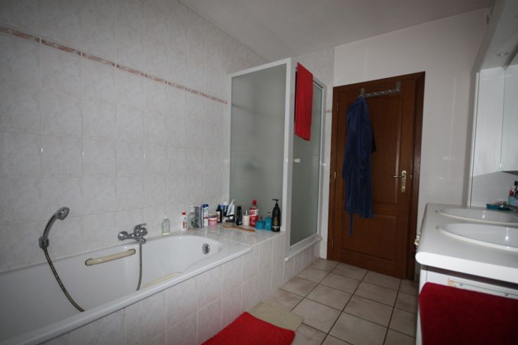 • Een moderne badkamer met zowel een ligbad als een douche.