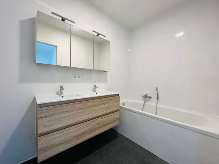 SCHAERBEEK - Eerste bewoning - Ideaal gelegen vlakbij Meiser en de NAVO, in een aangename buurt, schitterend APPARTEMENT (2 slaapkamers/1 badkamer/1 douchekamer) van ± 110 m² met TERRAS en overdekte parkeerplaats. Op de 4de verdieping van een nieuw gebouw, bestaat het uit een inkomhal met gastentoilet, lichte woonkamer van 30 m² met elegante superuitgeruste open keuken. 2 mooie slaapkamers (15 en 10 m²), douchekamer met toilet en badkamer. Aparte bijkeuken. Parkeerplaats beschikbaar (+€100/maand). Kelder. Lasten: 92 euro/maand provisie (afkoop regresverzekering, onderhoud gemeenschappelijke ruimtes) + jaarlijks onderhoud van dubbel stroomsysteem en warmtepomp. Lichtarmaturen en rails inbegrepen. Uitstekende energieprestaties, EPC A- (40,69kWh/m²/jaar). Ontdek het bij L&P!