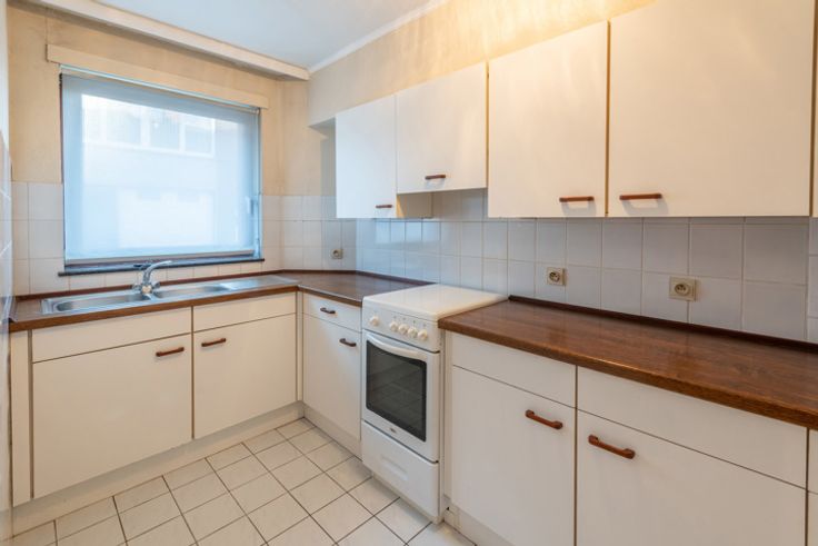Leuk gelijkvloers appartement met 2 slaapkamers en ruime privé kelder. Centraal gelegen appartement bestaande uit inkomhal, woonkamer in L-vorm, keuken, 2 slaapkamers, apart toilet en badkamer. In de kelder bevindt zich nog een grote privé berging, dewelke in de prijs begrepen is. U mag tevens gebruik maken van de gemeenschappelijke fietsenberging. Ideaal als startersappartement of als investering!
