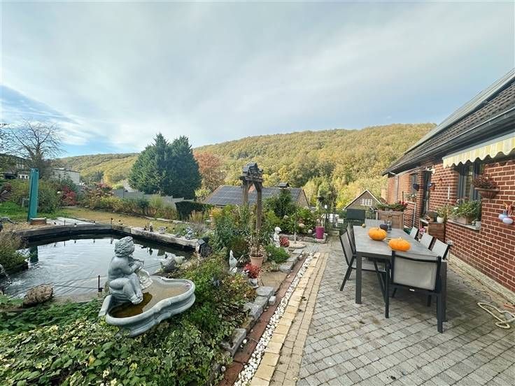 Le terrain situé à l'avant offre de nombreux d'emplacements de parking ainsi qu'un carport (mobilhome), Accès à deux rues, jardin sud ouest agrémenté d'une pièce d'eau, d'un chalet, et de 2 terrasses dallées avec nouvelle tente solaire électrique. Faible consommation en énergie due aux 28 panneaux photovoltaïques. Pour plus de renseignements ou fixer une visite, contactez le 0478/72.80.07