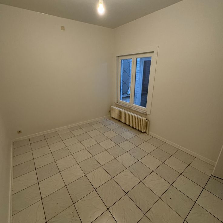 Dit appartement omvat een inkomhal, zeer ruime slaapkamer, nieuwe badkamer met douche en toilet, extra kamertje, woonkamer met keukenhoek. Er is een lift aanwezig in het gebouw, alsook een privatieve kelderberging op het gelijkvloers. Onmiddelijk beschibaar, €50 forfait vaste kosten. Renovatieplicht: onbekend