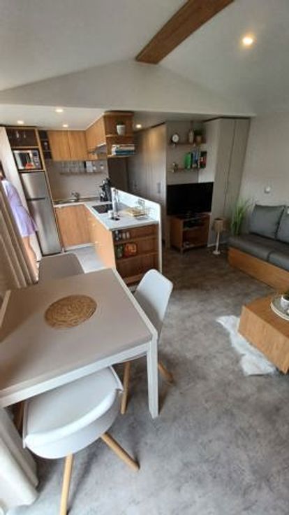 De chalet beschikt over 3 slaapkamers, 2 badkamers, 2 aparte toiletten, een mooie open keuken en een volledig ingerichte woonkamer.