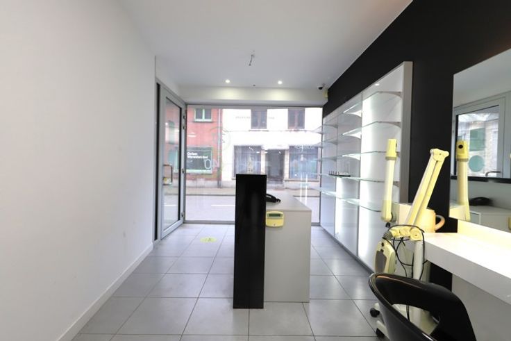 Dit handelspand is momenteel ingericht als kapsalon. De eigenaar van het kapsalon stopte er met haar activiteiten. Het salon is volledig ingericht. Je kan er direct starten. Er is een achterliggend toilet voorzien met kitchenette. Op de eerste verdieping is er een ruimte voor schoonheidsbehandelingen. Een ideale start voor een beginnende kapper/kapster/barbier.