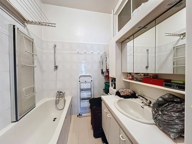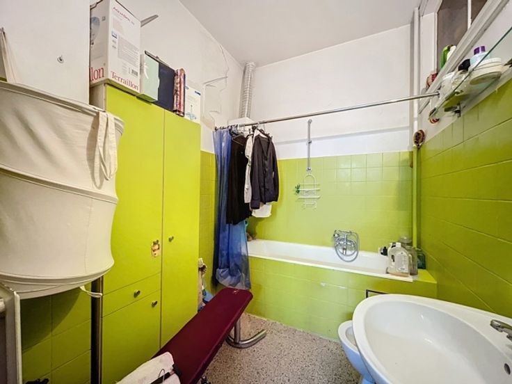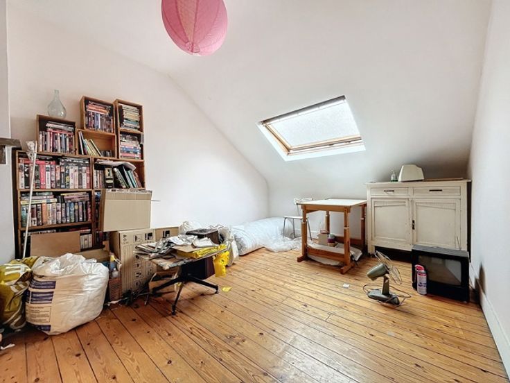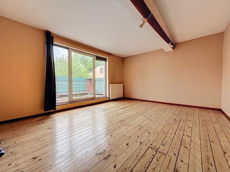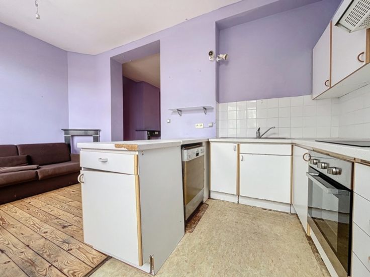2e verdieping: te renoveren appartement, bestaande uit een woonkamer, nachthal, keuken en een slaapkamer verbonden met de te renoveren duplexkamer in het huis op 19, met woonkamer, keuken, badkamer, 2 slaapkamers + achterterras,