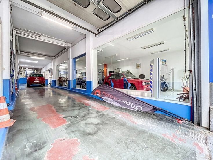 Begane grond: Showroom, kantoor, diverse lokalen en werkplaats aan de achterzijde