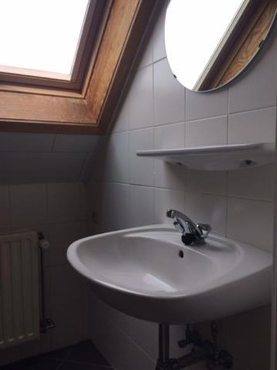 Op de tweede verdieping: twee slaapkamers, badkamer met lavabo en douche en apart toilet.
