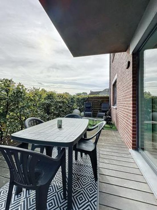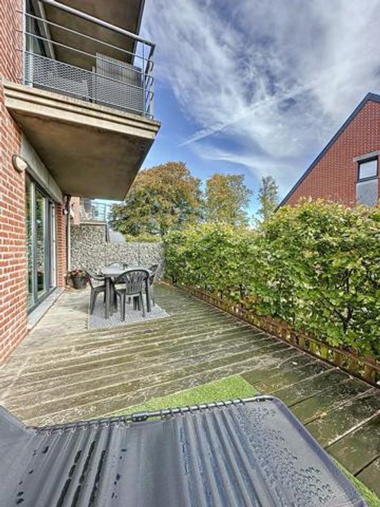 A l'extérieur : terrasse (+-25m2) et place de parking privées.