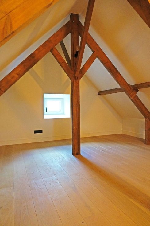 Op de tweede verdieping: een technische ruimte, 2 slaapkamers en een badkamer (douche, lavabo, toilet) . Vaste trap naar de zolderruimte.