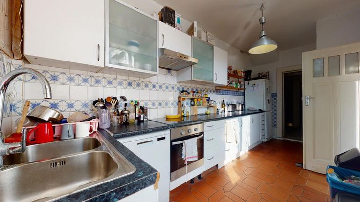 - rez-de-chaussée : un grand living de 3 pièces en enfilade, cuisine séparée, arrière-cuisine, accès à la terrasse et au jardin (75 m² orienté Ouest)