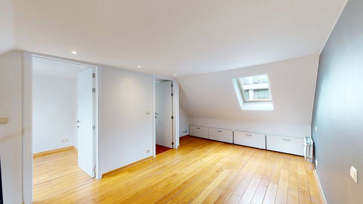 Dicht bij de Europese instellingen en het metrostation Maalbeek, in een klein gebouw in mede-eigendom zonder lasten, prachtig duplex penthouse van 93 m² met terras. Op de 3de verdieping bestaat dit appartement uit een mooie open ruimte van 50 m² met een open keuken, een woonkamer (die toegang geeft tot een mooi, onoverdekt terras van 24 m²) en een toilet. Op het 4e niveau is er een grote open ruimte die dienst doet als slaapkamer, kleedkamer (of kleine slaapkamer, of studeerkamer), en een badkamer. Individuele verwarmingsketel, videofoon. Elektriciteit op peil. Veel bergruimte. Hoog verhuurpotentieel voor mogelijke investering. EPB: D-