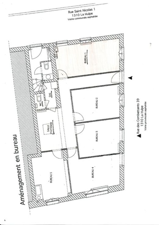 Bureau 18 m2 dans un ensemble de 2 bureaux avec en commun : wc + coin cuisine. Prix 360 euros + 50 euros pour le chauffage et l'électricité, nettoyage compris