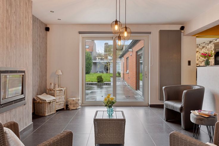 Instapklare woning op wandelafstand van de markt van Sint-Lievens-Houtem Gelegen in een rustige, doodlopende straat met uitstekende bereikbaarheid. Op de gelijkvloerse verdieping bevindt zich een ruime inkomhal, een lichtrijke woonkamer met gashaard en een aparte keuken. Er is eveneens een berging met toilet, een badkamer en een atelier. Dit atelier, dat tot voor kort dienstdeed als chocoladeatelier, biedt talloze mogelijkheden voor diverse toepassingen. De eerste verdieping beschikt over drie slaapkamers en een recent vernieuwde badkamer. De zolder is volledig ingericht als één grote kamer, met een dressing. Daarnaast is er een droge kelder en een tuinhuis voor extra opbergruimte. De gezellige tuin is ideaal voor ontspanning en buitenactiviteiten. De woning is voorzien van twee warmtepompen (in de berging en het atelier) en beschikt over 14 zonnepanelen, die nog in aanmerking komen voor groenestroomcertificaten. Dankzij het gunstige EPC-label D valt de woning bovendien buiten de renovatieplicht. Het stedenbouwkundig uittreksel is in aanvraag. Benieuwd naar deze woning? Contacteer niki@welleman.be of bel 053 84 89 80.