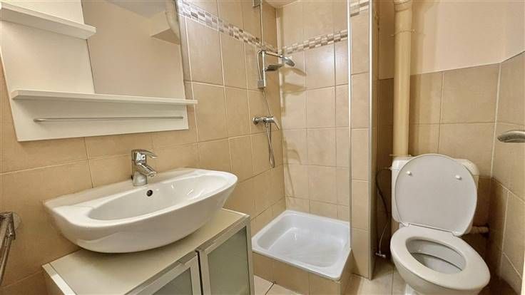 Deze studio, gelegen op de begane grond van een klein gebouw, bestaat uit een ruime woonkamer van 25m², een ingerichte keuken, een doucheruimte met toilet en een grote tuin van 35m².
