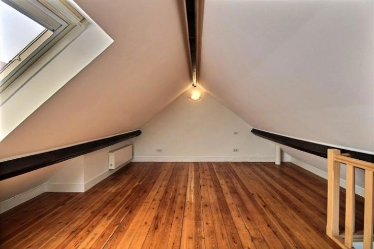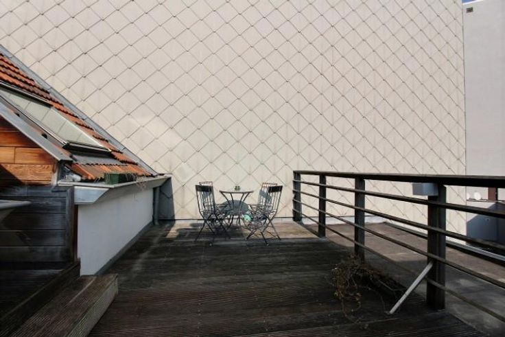 A proximité du Rondpoint Schuman, des institutions européennes, des commerces, et des moyens de transport, au dernier étage d'un petit immeuble sans ascenseur, bel appartement 1 chambre-à-coucher avec terrasse. Cet appartement se compose d'un vaste espace (living et salle-à-manger) ouvert sur une cuisine super-équipée, d'une salle de bains (avec possibilité de connecter un lave-linge), d'une chambre en mezzanine. Très agréable terrasse de 16 m² en façade arrière (calme). Cave. Faibles charges (50 euros pour l'eau, l'entretien et l'électricité des communs).