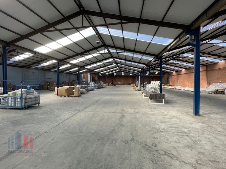 De geïsoleerde loods met een vrije hoogte tussen 4,3 en 8,6 m is toegankelijk via een automatische sectionale poort (4 m B x 4,5 m H). Verder is het magazijn voorzien van een betonvloer, lichtstraten en LED-verlichting. Aanwezigheid van 380 V. Goed bereikbaar dankzij de ligging op slechts 180 m van de Natiënlaan (N49) die na 1,5 km verbinding biedt naar de A11 richting Zeebrugge/Brugge.