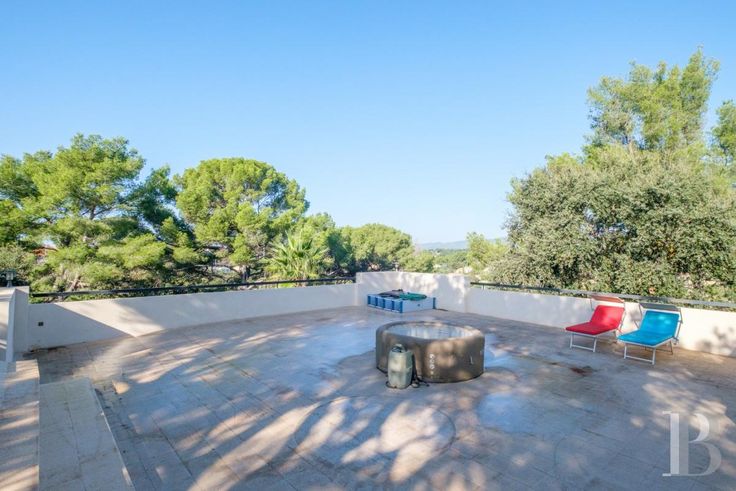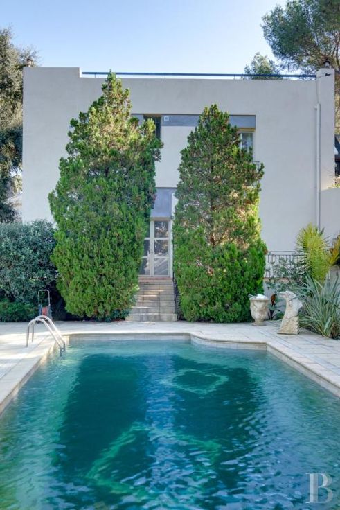 À La Seyne-sur-Mer, une grande maison d'architecte originale en position dominante, avec toit-terrasse et piscine, sur 2 400 m² de terrain arbor.