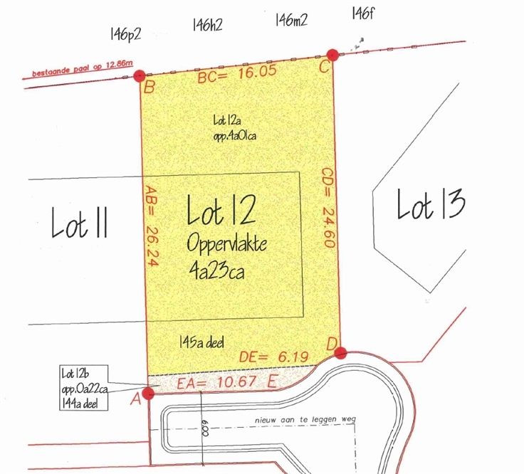 Bouwgrond (lot 12) voor halfopen bebouwing in rustige en doodlopende straat te koop.