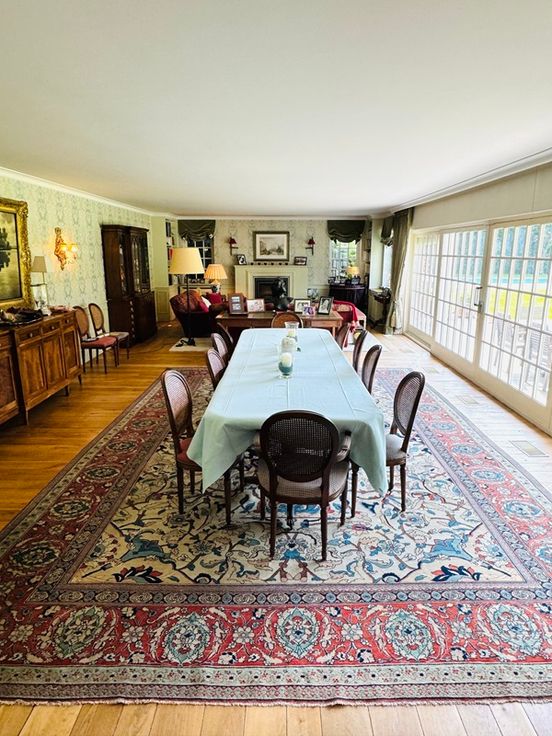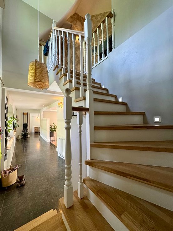 Idéalement située dans 1 clos à proximité des grands axes, des écoles, de la gare et de toutes les facilités, cette superbe propriété de grande qualité et érigée sur un terrain de 74 ares développe de magnifiques volumes avec au RDC de vastes et élégantes réceptions agrémentées d’un splendide espace idéal pour recevoir avec bar, feu ouvert et barbecue intérieur, le tout offrant une vue imprenable sur un luxuriant jardin à maturité ayant pour prolongation les champs à perte de vue. À l’étage, un aménagement familial extrêmement confortable, offrant une suite parentale complète avec porte blindée et deux chambres supplémentaire possédant leur propre salle de bain. L’espace couvrant la grande salle de réception offre aussi la possibilité de faire 2 chbres supplémentaires + sdb. Cet espace est accessible par l’étage et par un escalier indépendant partant de la grde salle. Au détour d’un chemin privé traversant la propriété, vous accéderez à la conciergerie (louée), entièrement rénovée et reconvertie en maison familiale (190 m² PEB "D"), comprenant hall d’entrée, salle à manger, living et cuisine américaine avec à l’étage, 3 belles chambres et 2 SDB. Cette dépendance bénéficie également de son terrain à part entière (+/- 20 ares) et d’une tranquillité sans pareil. Entre la propriété principale et la dépendance précitée, une bande de Terrain (+/-12 ares) est également inclue. PEB « C ». Chauf. au Mazout. Visites: 0475.21.74.14