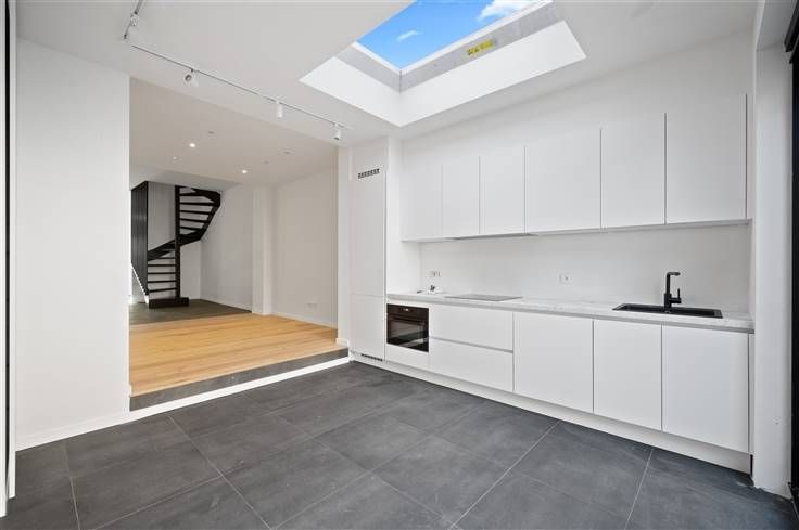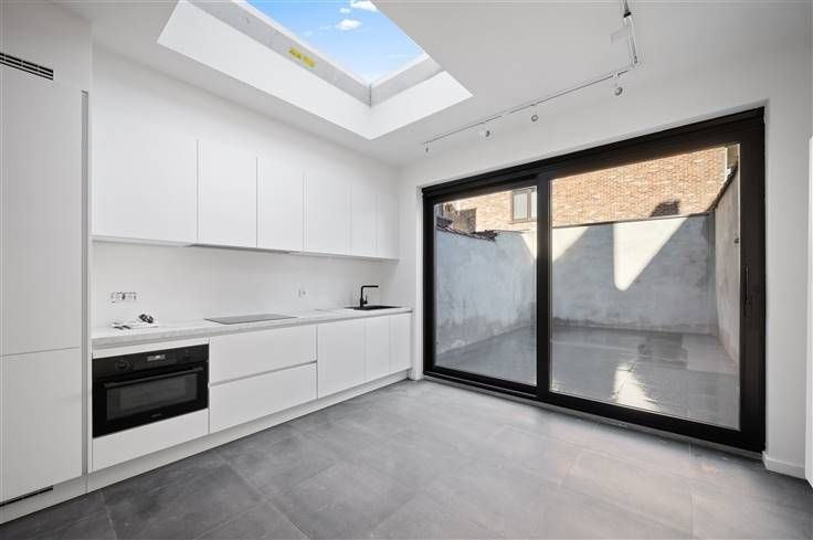 Op wandelafstand van de kernstad, maakt deze totaal vernieuwde woning met gekaleide gevel en plint in blauwe hardsteen, een frisse, jonge indruk. U kan hier kortparkeren voor de deur of met bewonerskaart/blauwe schijf parkeren om de hoek, of uw fiets in het fietsenrek plaatsen voor de deur. De woning is volledig instapklaar, met volledige afgewerkte binnendeuren (zwarte klinken), nieuwe trap, videofoon, veel lichtarmaturen (LED), inbouwspots, een stevige alu-voordeur, etc. De volledig opengewerkte living en de open eetkeuken, krijgen meer dan voldoende licht via een koepel en een nieuw zwart schuifraam. Afgezien van de dampkap (Novacel), zijn alle apparaten van Samsung: kookvuur, oven, freezer, koelkast en vaatwasser. Op de bovenverdiepingen tellen we in totaal 3 kamers, allen met grote ramen, dataconnectie en laminaat. In de grote badkamer liggen ook grote zwarte tegels en is een lavabomeubel met spiegel voorzien, een hangtoilet, plus een inloopdouche met wit/zwart contrast. De muren rondom het terras met afvoergeul, zijn mooi gecementeerd. Alle muren in huis zijn voorzien van een laag primer en twee lagen verf, zodat u zelf niets meer hoeft te ondernemen op dat vlak. Wie goed oplet in de buurt, ziet dat er in de aanpalende straten volop vernieuwingswerken aan de gang zijn, wat bijdraagt aan de aantrekkelijkheid van de buurt. Het nieuwe ziekenhuis verderop in de straat en de goede verbindingen voor pendelaars, maken dit mee tot een goede investering.
