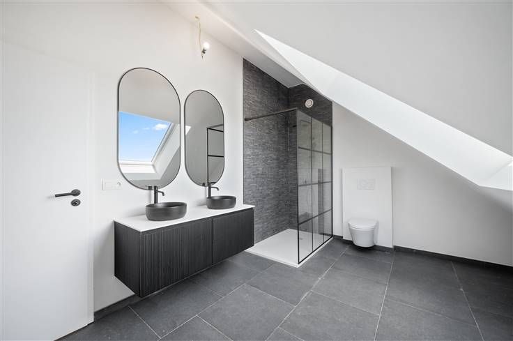 Uitkijken op een paardenweide en bomen, geeft automatisch rust. Hier kan u in de volledig omheinde tuin vanop uw grote terras (incl. geul) genieten van het uitzicht en de omgeving. Zowel technieken als afwerking werden vernieuwd in 2024. De buitengevel straal luxe uit, met een plint plus kader in blauwe hardsteen, een gevel met wit kaleiwerk, een gigantische trekker op de zwarte alu-voordeur en een nieuw pannendak. De hele woning is voorzien van alle modern comfort: ventilatiesysteem met warmteterugwinning, videofoon, metalen trappen, een mezzanine, vloerverwarming, zonnepanelen, etc. In de leefruimte en de open keuken contrasteert de parketvloer met de grote donkere tegelvloer. De keukenuitbouw met eiland, bestaat uit een nieuw aangebouwdgeheel, dat buiten is afgewerkt met mooie, zwarte gelijmde gevelstenen. De open eetkeuken (wit/hout) met 9 inbouwspots, bevat een resem kwaliteitsapparaten: dampkap, koelkast, freezer, kookplaat, oven, vaatwasser en microgolf. Van de drie kamers met grote ramen, is er slechts één met een schuin gedeelte, op de tweede verdieping. De verrassend ruime badkamer op de tweede verdieping, is voorzien van een groot veluxraam, een sierradiator, een hangtoilet, een dubbel lavabomeubel en een inloopdouche (regenfunctie), afgescheiden door een glazen wand. Wat de isolatie betreft, kan u uit de epc-score van dit pand, afleiden dat u de komende jaren geen verplichte isolatie-acties dient te ondernemen.